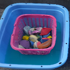 ①プラスチック容器に5~10倍に希釈したクリーナーを用意する