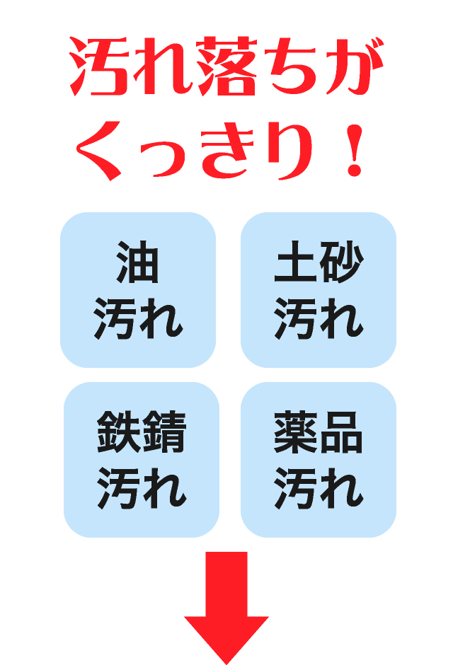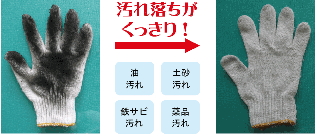 油、土砂、鉄さびなどで汚れた作業着、軍手などの洗濯用洗剤