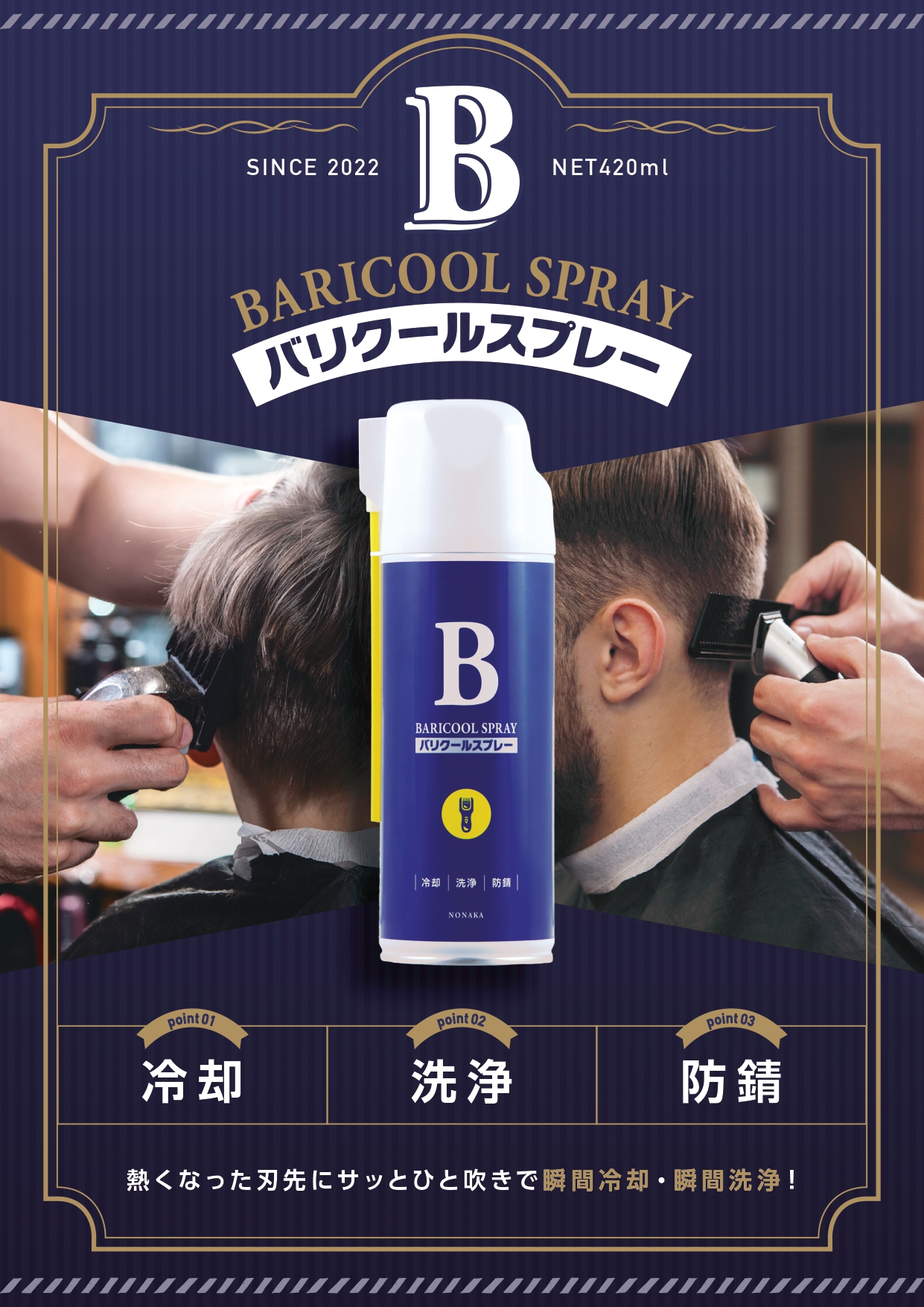 熱くなった刃先にひと吹きで「瞬間冷却」、「瞬間洗浄」、「ベタつかずに防錆」出来るバリカンの為の洗浄剤
