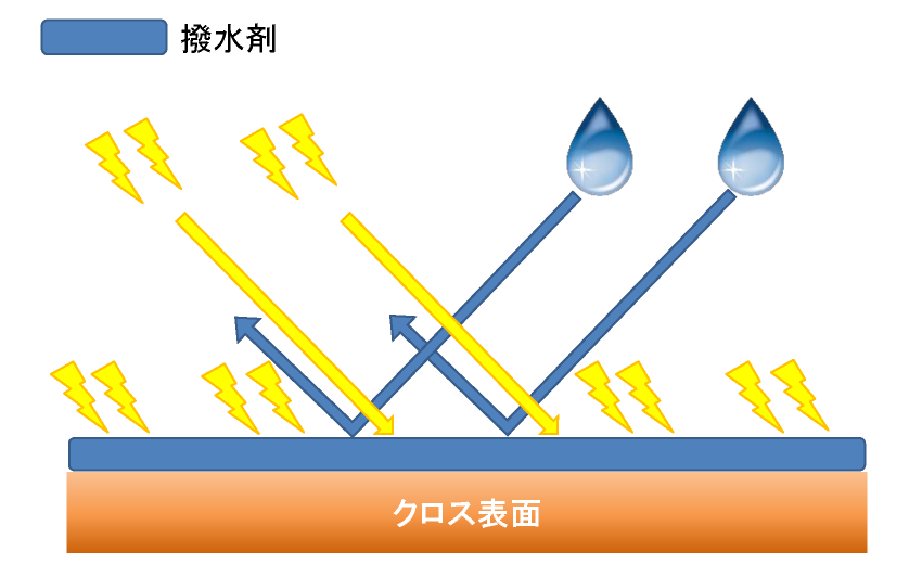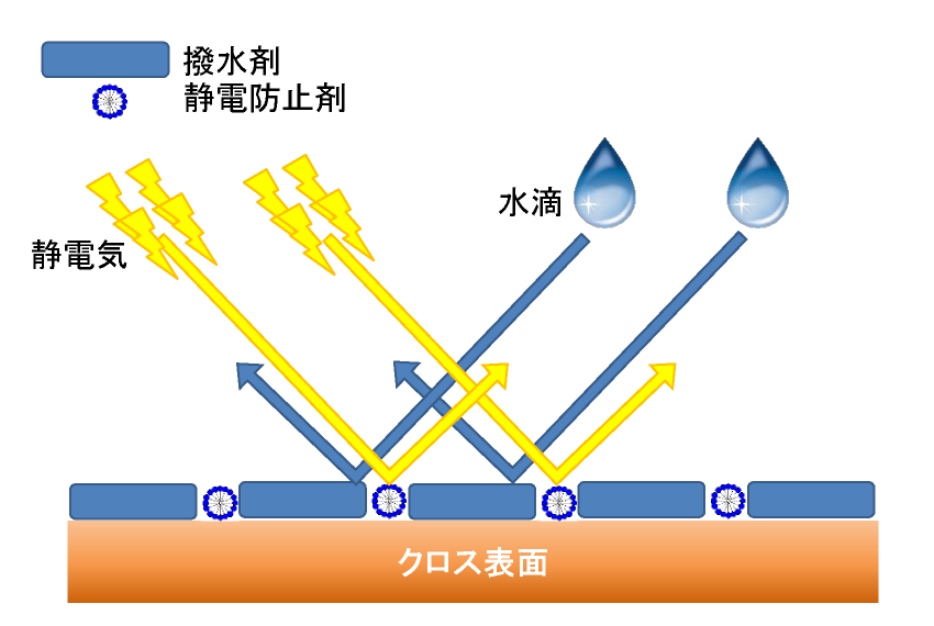 クロスガードスプレーは、市販防水スプレーの撥水・防水効果と市販静電防止スプレーの静電防止効果を併せ持っていると考えられます。