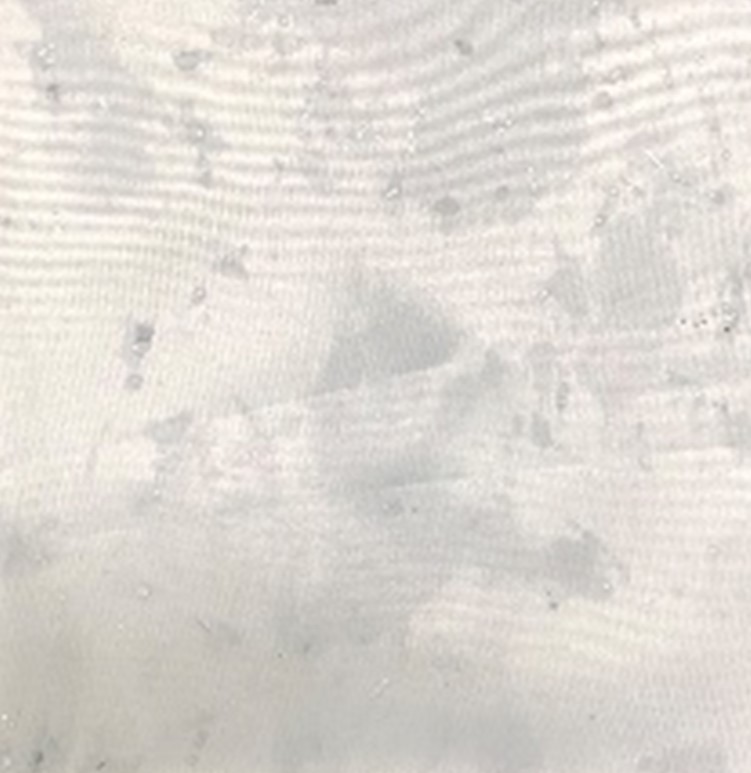 使い古したスポンジを握った手で触ったクロスを①そのまま ②クロスガードスプレーを塗布後生菌数測定寒天培地上に載せ、29℃の培養器に3日間入れて菌が発生するか確認しました。
