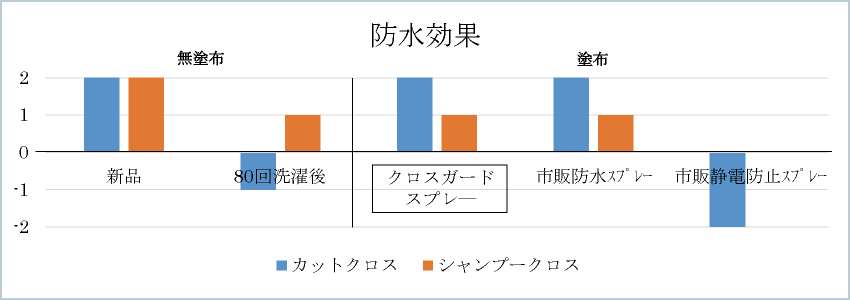 表2 クロスの撥水・防水・静電防止効果