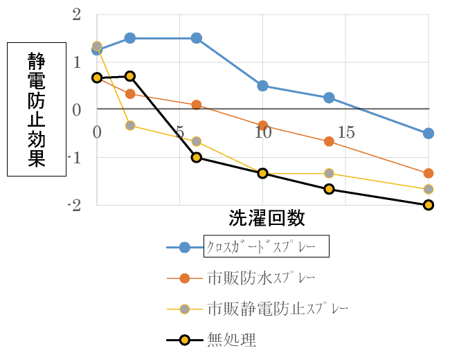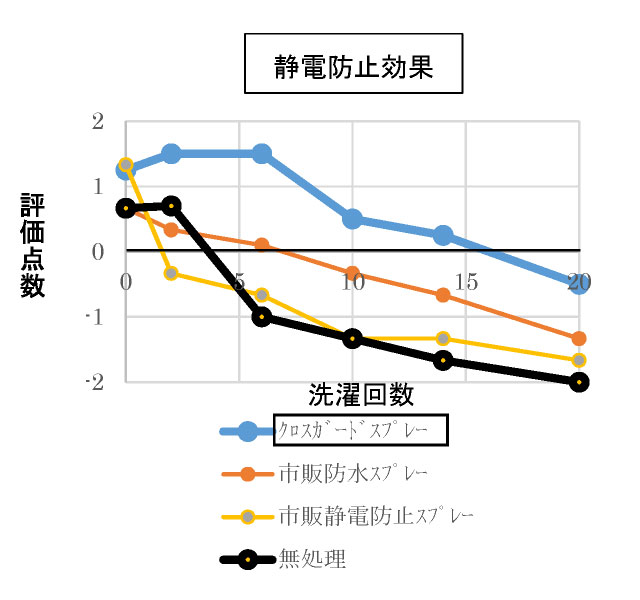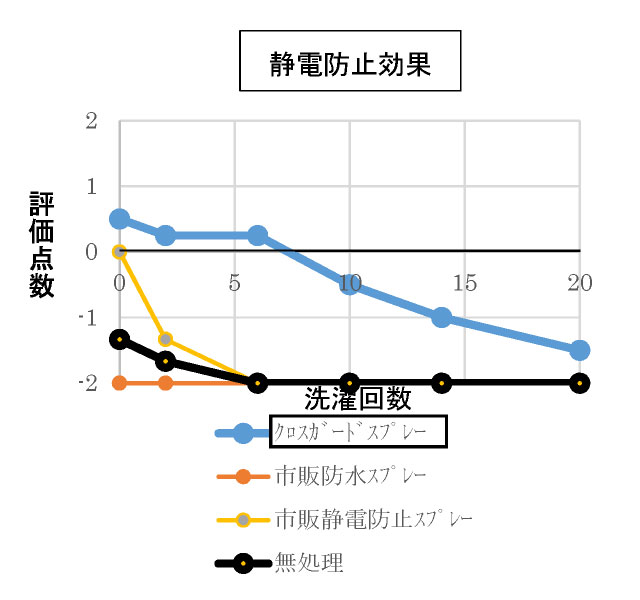 特に静電防止効果でクロスガードスプレーが高い持続性を示しました。