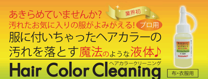 | 色落ちはありませんか? | ヘアカラーの汚れのみを除去するように開発をしておりますが、希に色落ちや変色がある場合があります。特に青色系の変色(デニムなど)や新品の衣服はその確立が高いようです。 お客様の衣服やお気に入りの服の場合は、あらかじめ目立たないところで試して下さい。 |