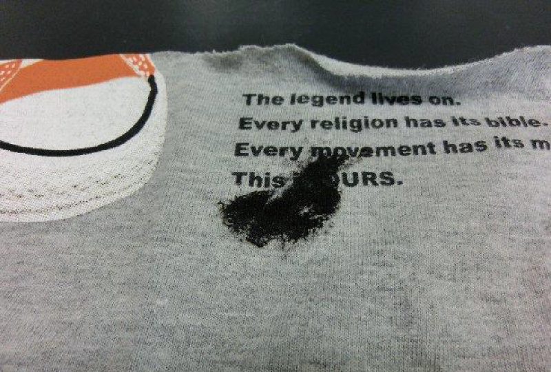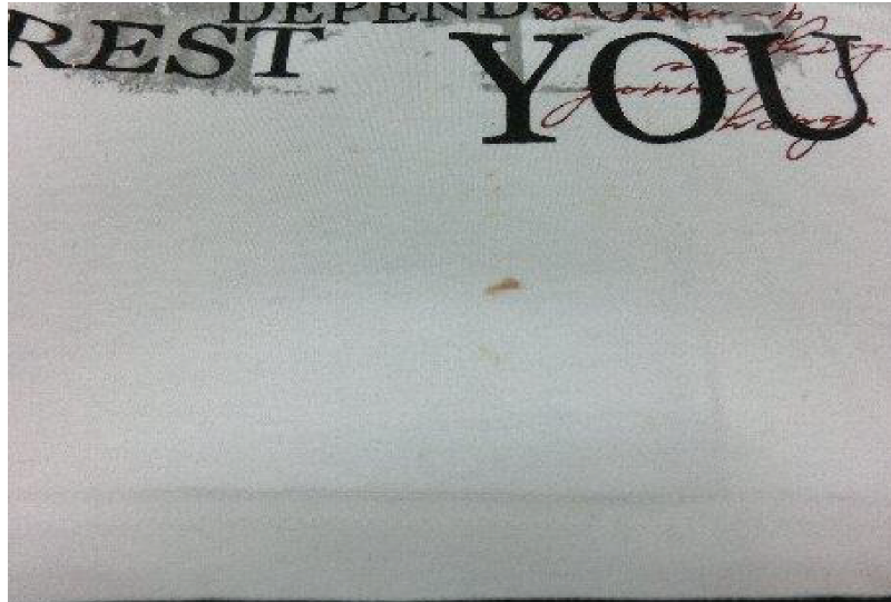文字部分にかけてのカラー汚れ。